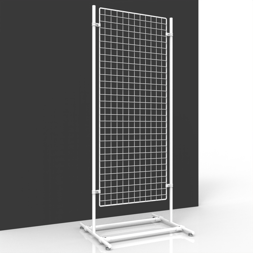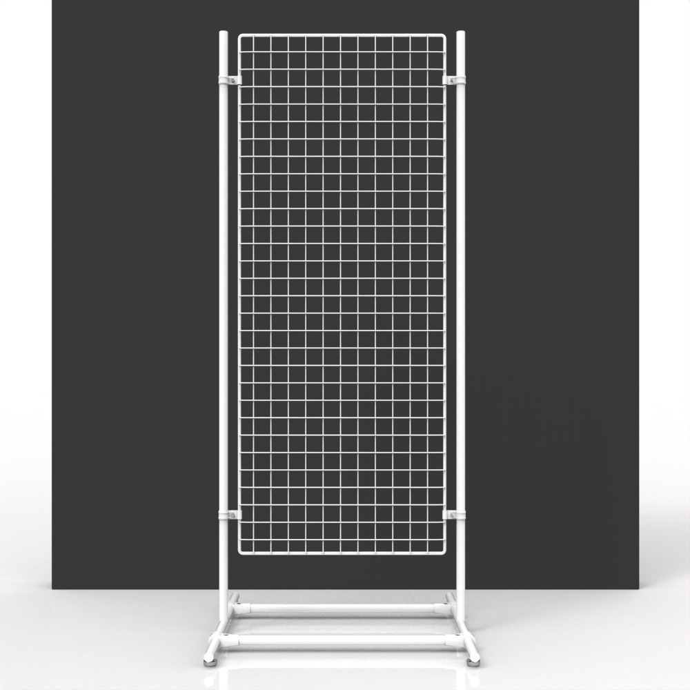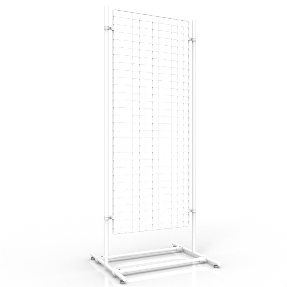 Mit diesen mobilen Gitterständern können Sie Ihre Produkte sehr leicht an jeder Stelle Ihres Geschäftes präsentieren. Die Abmessung von 160 x 70 cm bietet Ihnen viel Platz für eine große Zahl an Artikeln, die mit den passenden Hakensystemen angebracht werden.