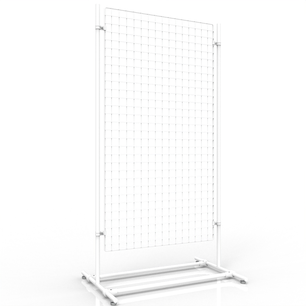 Mit diesen mobilen Gitterständern können Sie Ihre Produkte sehr leicht an jeder Stelle Ihres Geschäftes präsentieren. Die Abmessung von 160 x 90 cm bietet Ihnen viel Platz für eine große Zahl an Artikeln, die mit den passenden Hakensystemen angebracht werden.