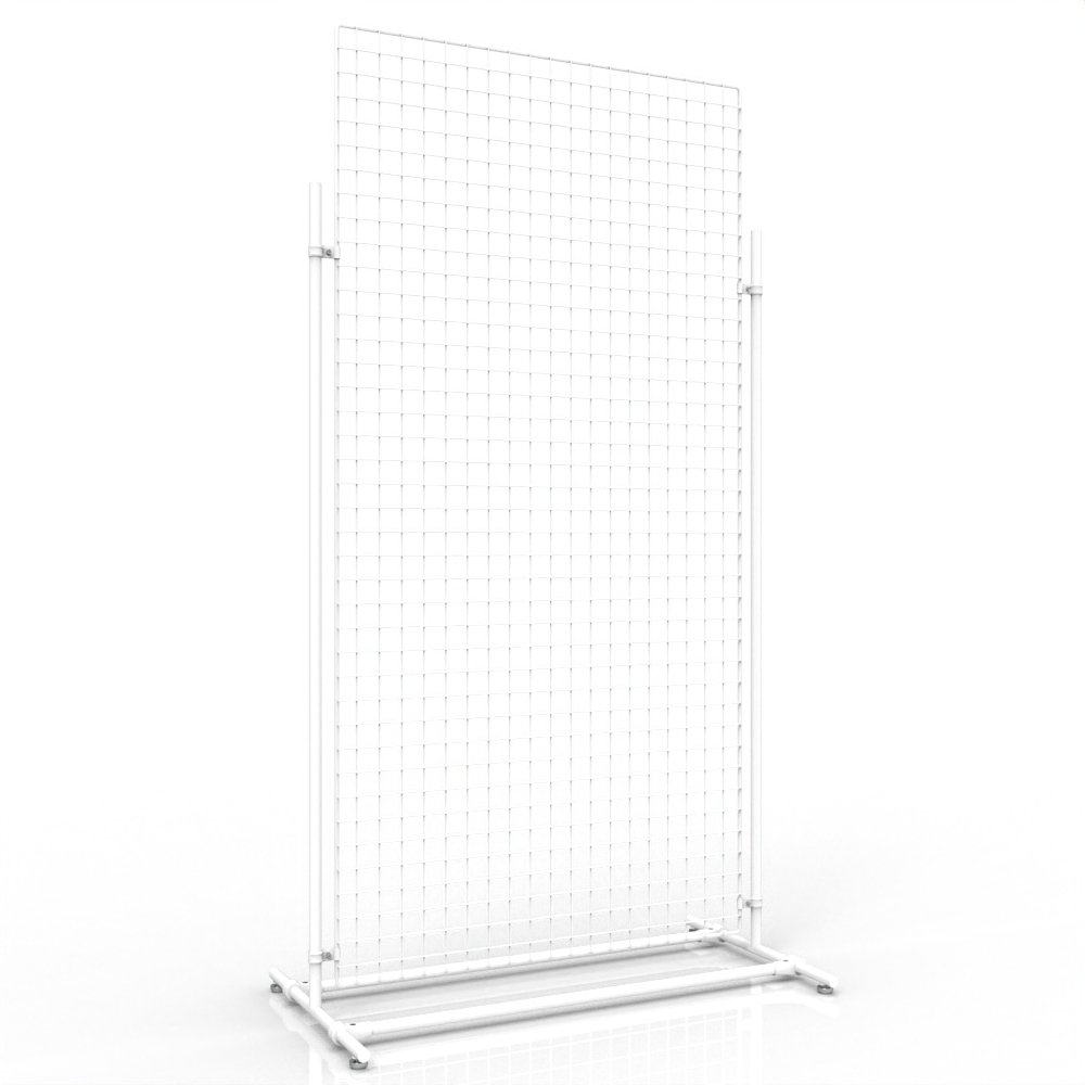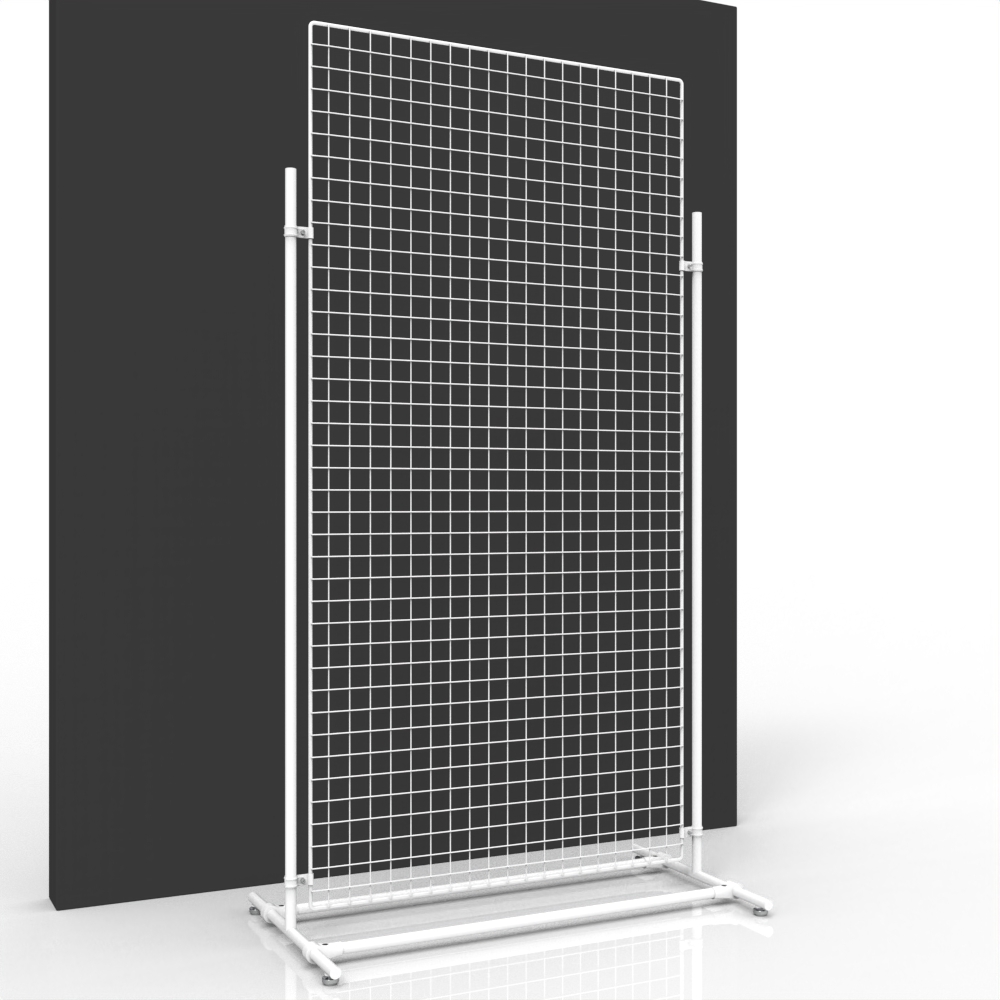 Mit diesen mobilen Gitterständern können Sie Ihre Produkte sehr leicht an jeder Stelle Ihres Geschäftes präsentieren. Die Abmessung von 210 x 110 cm bietet Ihnen viel Platz für eine große Zahl an Artikeln, die mit den passenden Hakensystemen angebracht werden.
